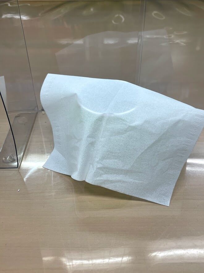 紙コップの上にテッシュペーパーが乗せてある・・・