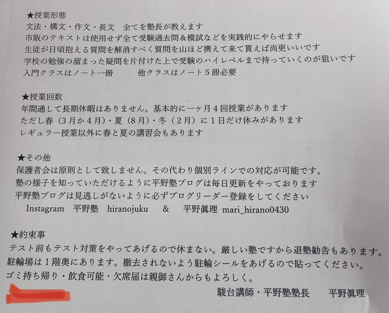 平野塾HPのお問合わせからも可