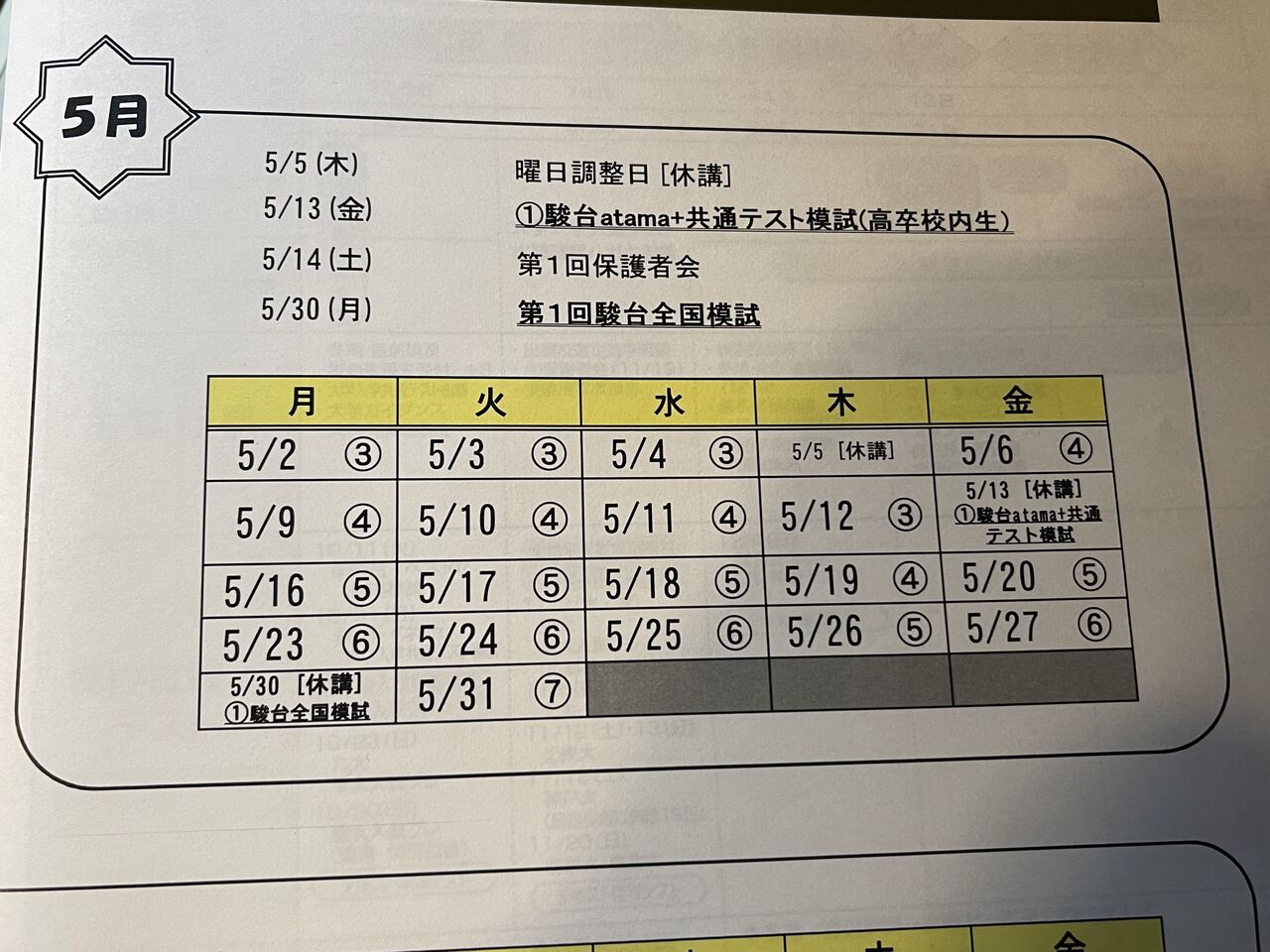 ★5月日程