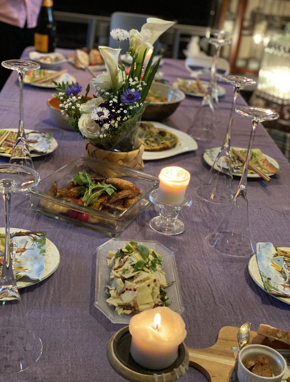 急遽ランチテーブルの用意して〜〜