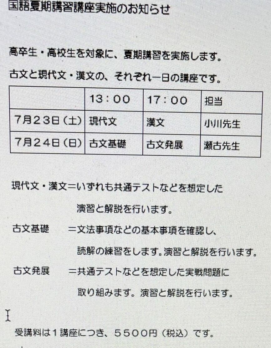 夏期講習は5月29日参照