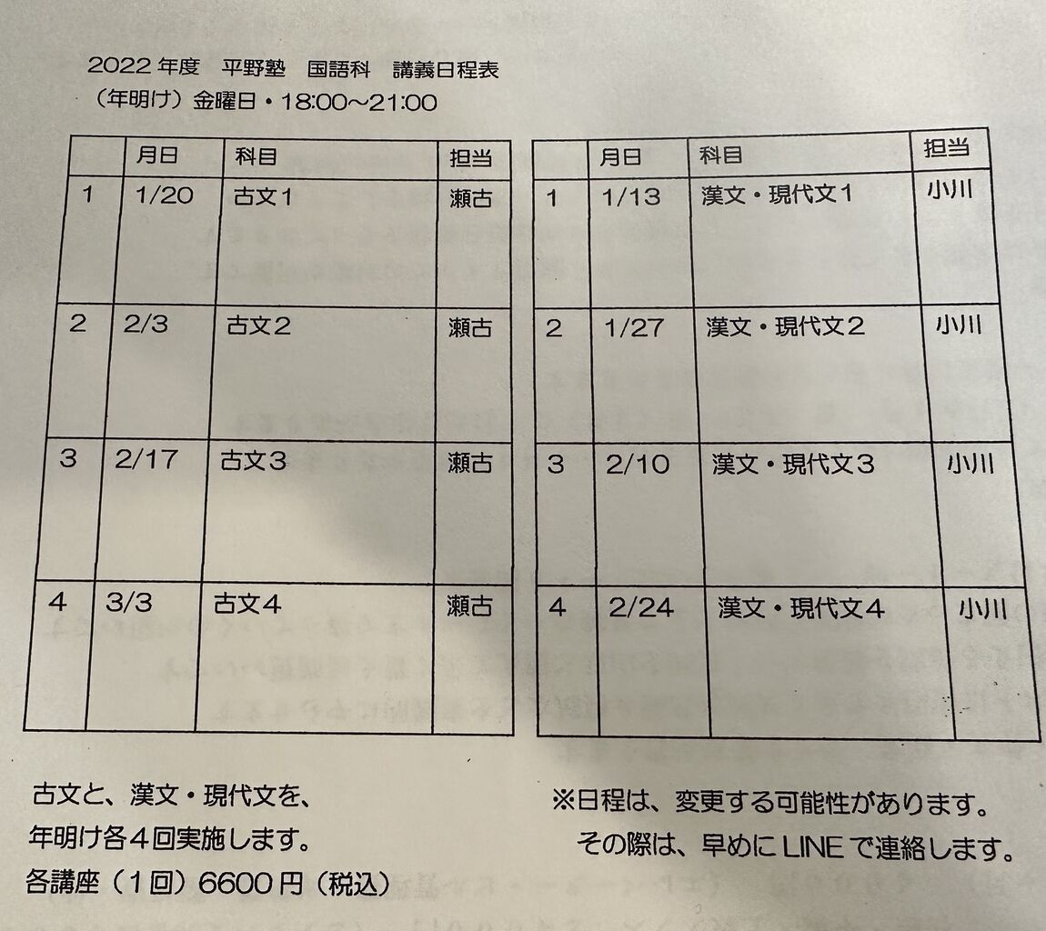 新年の日程は昨日のブログ参照してくださいね